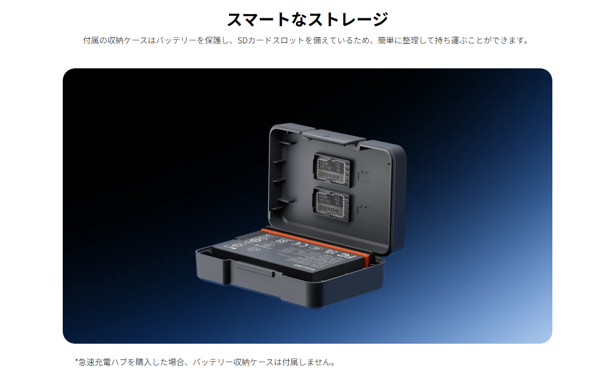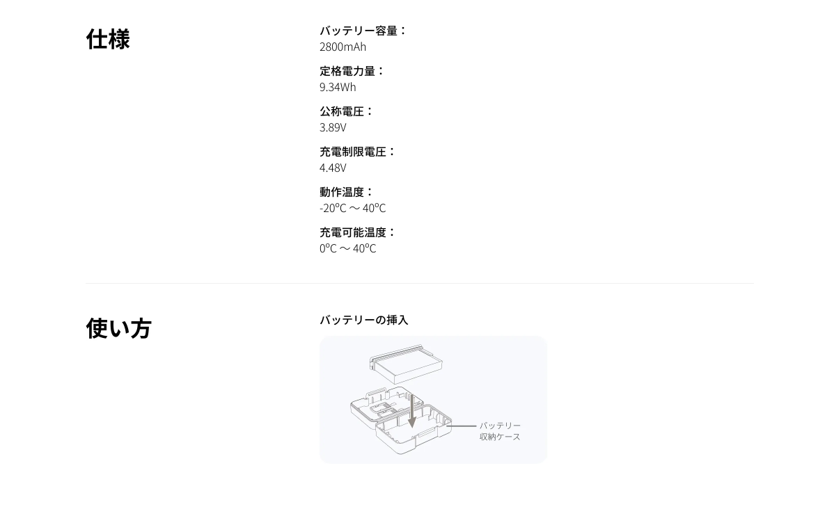 同梱物:バッテリー x1、バッテリー収納ケース x1