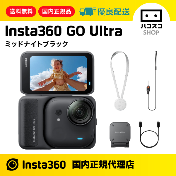標準キット:GO Ultra本体、レンズガード (レンズに装着済み)、クイックリリース安全コード、マグネット式簡易クリップ、磁気ペンダント、クイックスタートガイド、保証(1年間)※内蔵メモリは非搭載、別途microSDカード(別売り)が必要です。