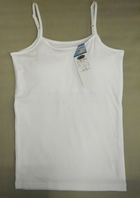 女の子用、綿混で、やさしくフィットする白のキャミソール探すのが大変な ジュニアの肌着バストが ちょっと気になり始めたら どうぞお店で販売していて、定番で、いつでも売れている肌着です。肌触りも良く 吸汗性に優れ汗かきの子供たちにはピッタリ。体にピッタリしたシャツを着ているほうが、体温の調節が取りやすく外気温が体温に与える影響が少ないので風邪を引いたり、体調を崩すようなリスクが少なくなります。お子さんにとっても、肌着を一枚着た方が、動きやすく快適なのです。本体は綿65% ポリエステル33% ポリウレタン2%