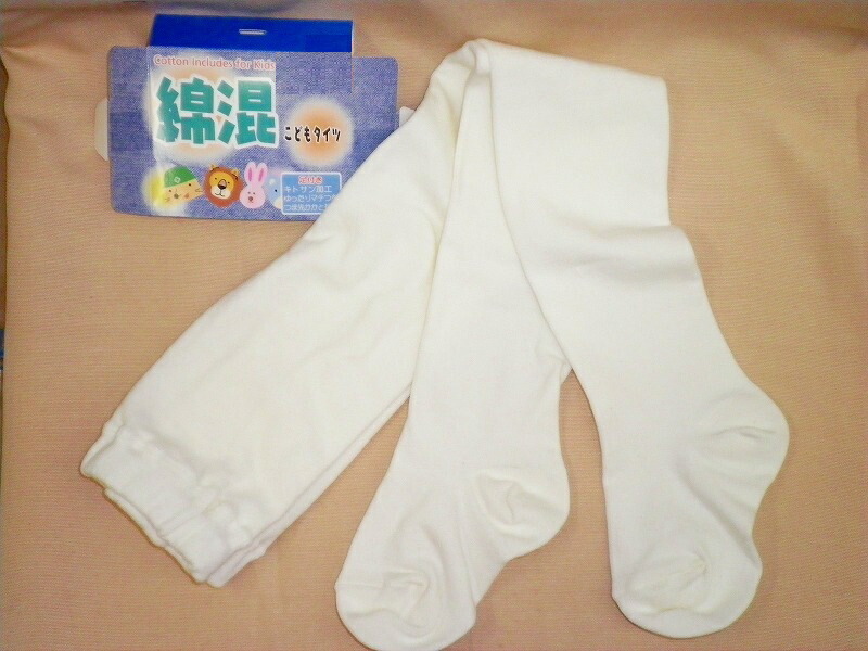 送料無料 少々汚れあり 子供用タイツ 白 無地 チクチクしない綿混 身長サイズ 90〜100・95〜115・110〜130・125〜145cm白の無地 厚地タイツ