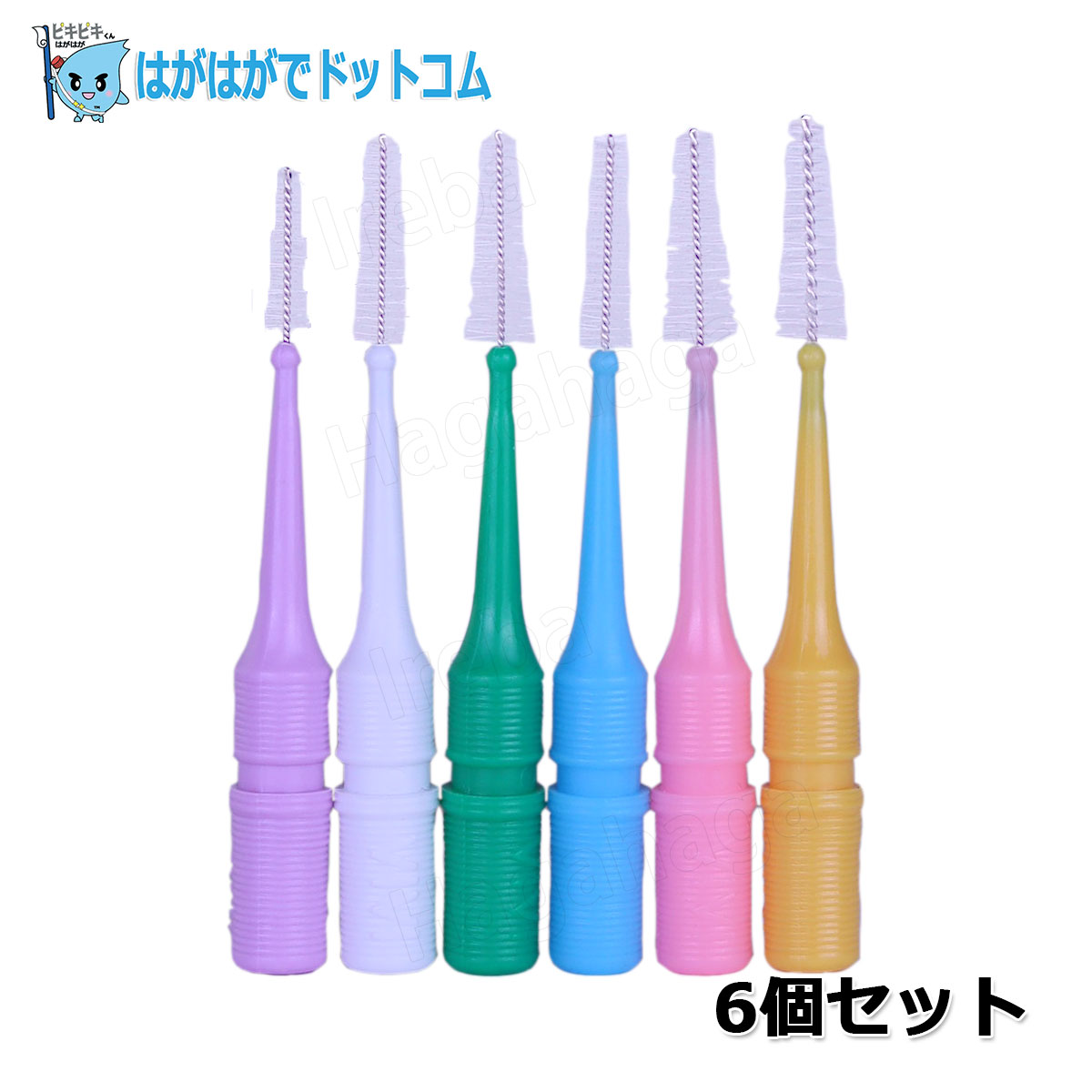様々な歯のすき間に対応できるよう、6種のブラシ形状が6色の柄で用意されています。