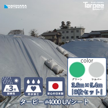 ターピー UVシート #4000 3.6m×5.4m [8枚セット] | 全2色 シルバー グリーン 日本製 超厚手 長持ち UV剤入 UVカット ブルーシート カラー 送料無料
