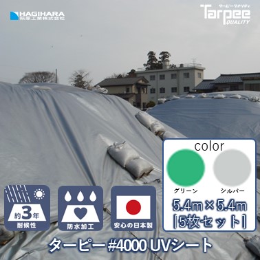 ターピー UVシート #4000 5.4m×5.4m [5枚セット] シルバー | 日本製 超厚手 長持ち UV剤入 UVカット ブルーシート カラー 送料無料