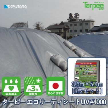 【メーカー公式】ターピー エコサーティシート UV#4000 3.6m×5.4m [8枚セット] | シルバー 耐候性養生シート 日本製 送料無料高耐候&焼却処分時の温室効果ガス発生が少ないシート