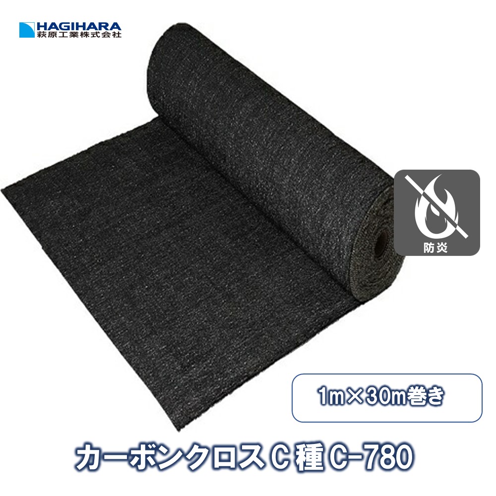 カーボンクロス C種 C-780 1m×30m巻き | 2mm厚 ブラック 耐火 耐熱 断熱 溶接 溶断 火花 ノロ 養生 防炎 建築工事 ロール 100cm×30m