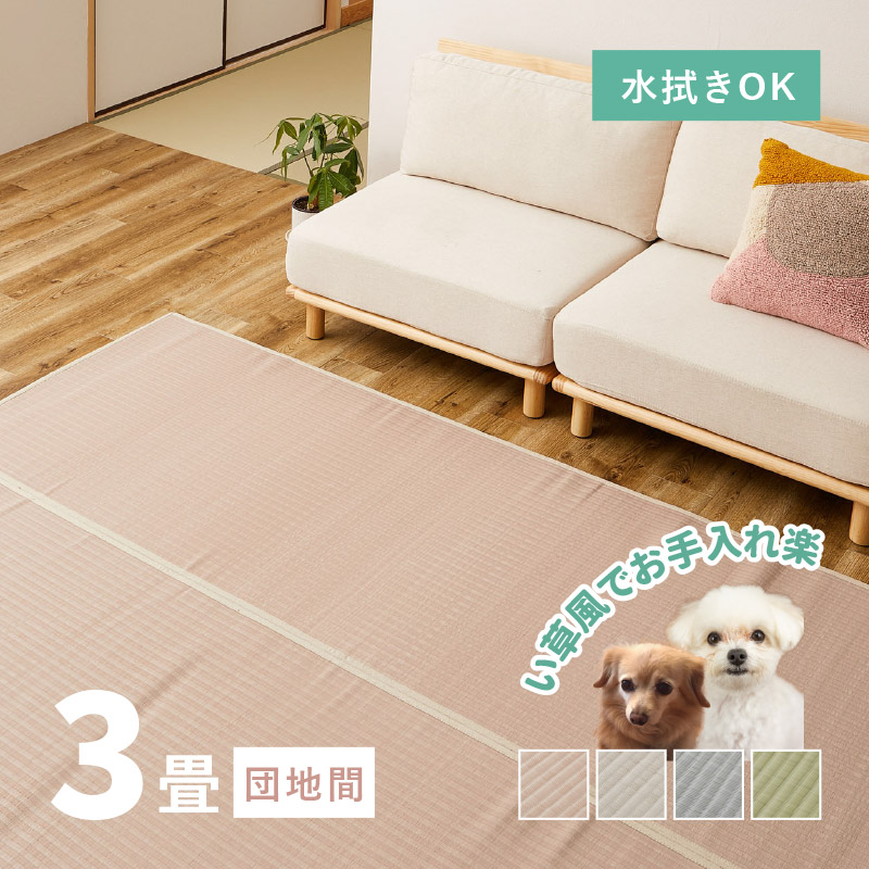 ラグ 洗える カーペット ビニール風 上敷き ござ ゴザ 3畳 3帖 団地間 170×255cm 花ござ たたみ風 無地 和室 ござ ペット 萩原 四条