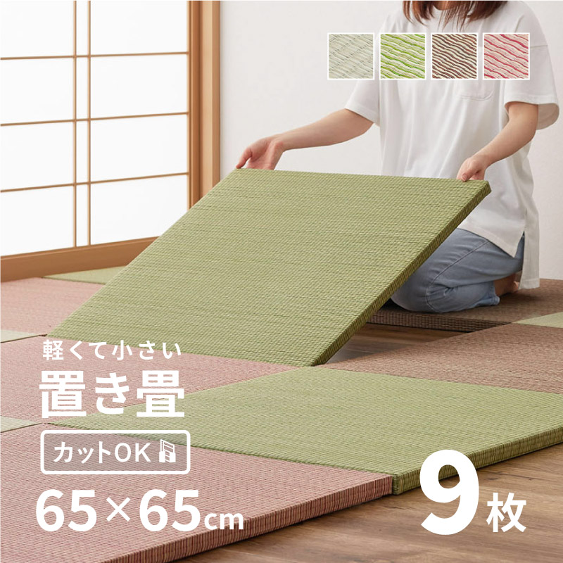畳 置き畳 ユニット畳 い草 65cm 65×65×2.5cm 縁無し 同色9枚セット 2.5畳 たたみ 正方形 DIY カット可能 小さめ 軽い 軽量 湊川 期間限定