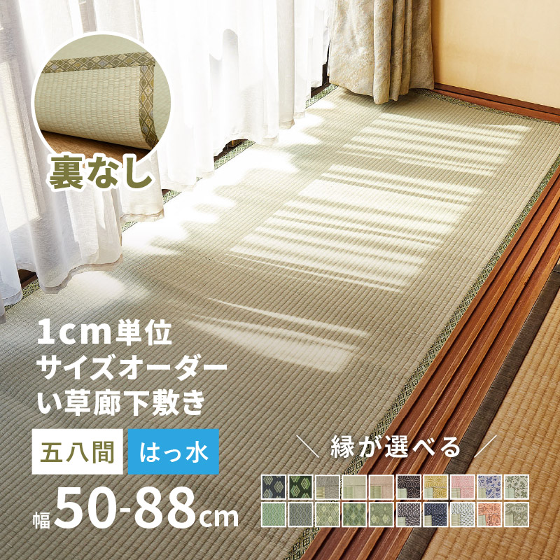 サイズオーダー 廊下敷き 廊下マット 廊下カーペット ござ 1cm単位 はっ水 撥水 畳 和風縁 かわいい縁 選べる 備前 五八間 裏貼り無し