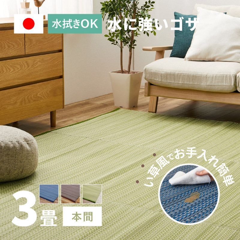 ラグ い草風 ゴザ カーペット 3畳 191×286cm 本間 畳の上に敷くもの 日本製 洗える パイプ素材 PP ポリプロピレン ライアン