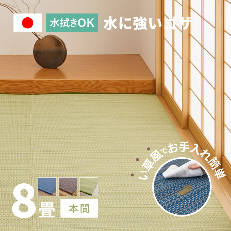 ラグ い草風 ゴザ カーペット 8畳 382×382cm 本間 畳の上に敷くもの 日本製 洗える パイプ素材 PP ポリプロピレン ライアン