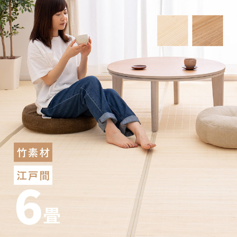 竹 ラグ カーペット 6畳 6帖 261×352cm 6畳 江戸間 折りたためる 涼しい コンパクト アジアン 竹上敷き ござ 葉月
