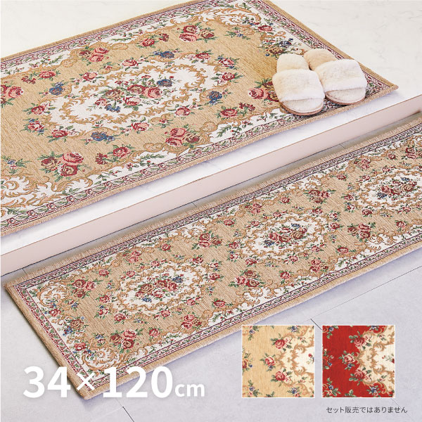 玄関マット 上がりかまち 玄関かまち 玄関 室内 マット 34×120cm ゴブラン 絨毯柄 花柄 クラシカル おしゃれ 洋風 ザイン