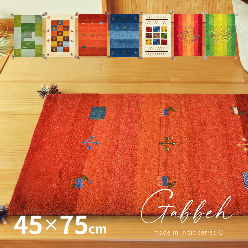 ギャベ ギャッベ 玄関マット 室内マット マット 45×75cm GABBEH おしゃれ 手織り 羊毛 ウール オールシーズン カラフル Dシリーズ
