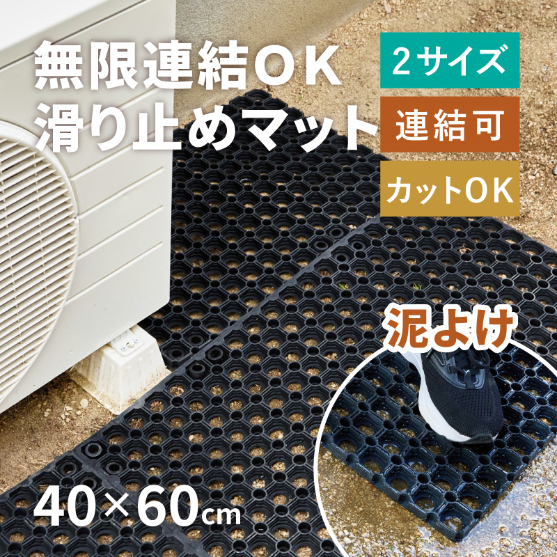 滑り止めマット 連結マット 滑り止め 泥落とし 40×60cm 駐車場 穴あき ラバーマット 屋外マット ドアマット 黒 ジョイント連結パーツ2個付き