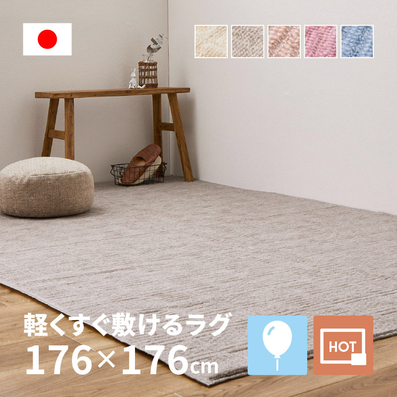 ラグ カーペット 2畳 江戸間 2帖 176×176cm 日本製 軽量 裏なし タフトラグ 絨毯 平織り ノアリス 5色