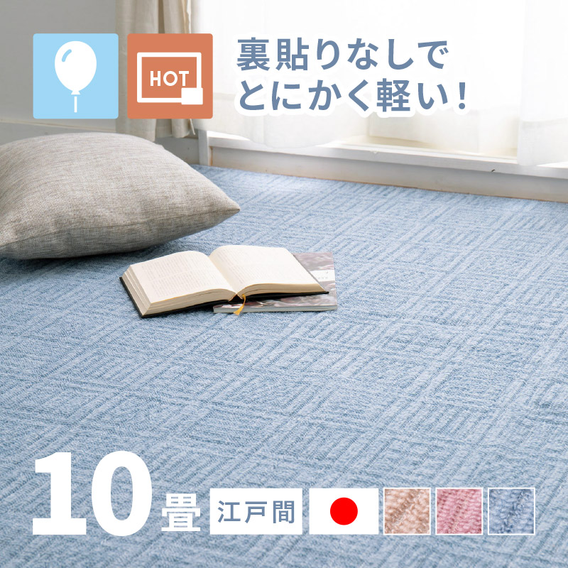 軽量カーペット。一人暮らしでも持ち運び楽々。弾力があり復元性に優れていてへたりにくく、ふかふかとした肌触りが特徴。