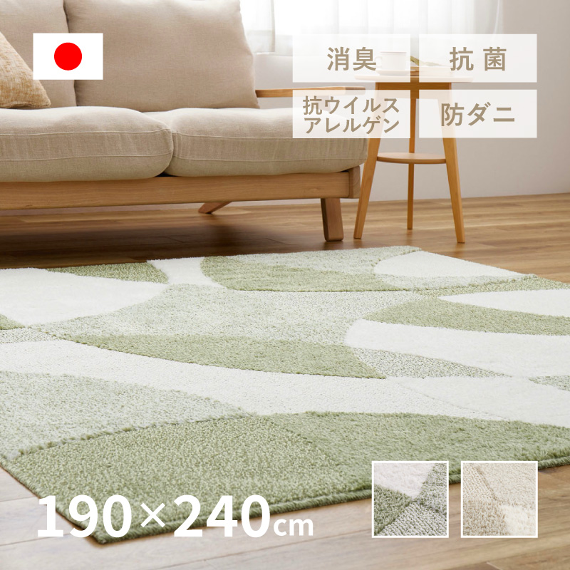 ラグ マット カーペット 3畳 190×240cm 日本製 防ダニ 抗菌防臭 抗ウイルス アレルゲン 花粉 消臭 ホットカーペットカバー シンプル ジャスト