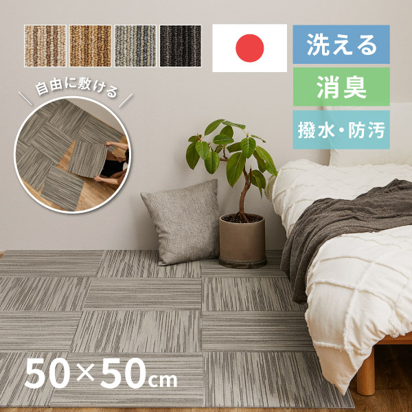 洗える タイルカーペット 撥水 防汚 消臭 防ダニ 50×50 ラグ 敷き詰めカーペット ペット おしゃれ 滑り止め