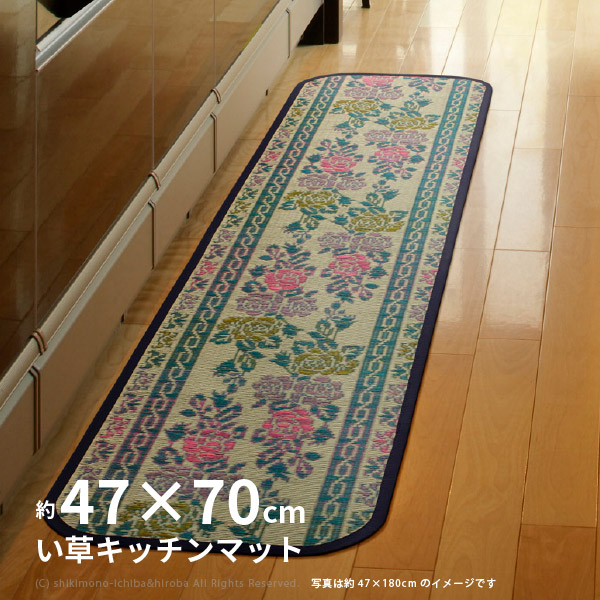 い草 玄関マット 47×70cm たたみ 薔薇柄 涼しい 和モダン イグサ 花柄 涼華 裏貼有