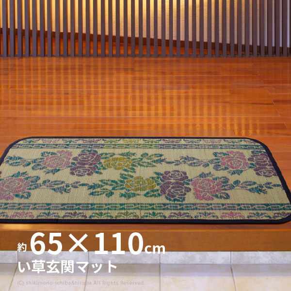 い草 玄関マット 65×110cm たたみ 薔薇柄 涼しい 和モダン イグサ 花柄 涼華 裏貼有
