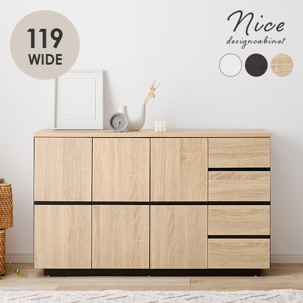 キャビネット サイドボード 幅119cm 扉 引き出し 可動棚 大容量 収納家具 小物 書類 本 文房具 リビング シンプル おしゃれ ナイス
