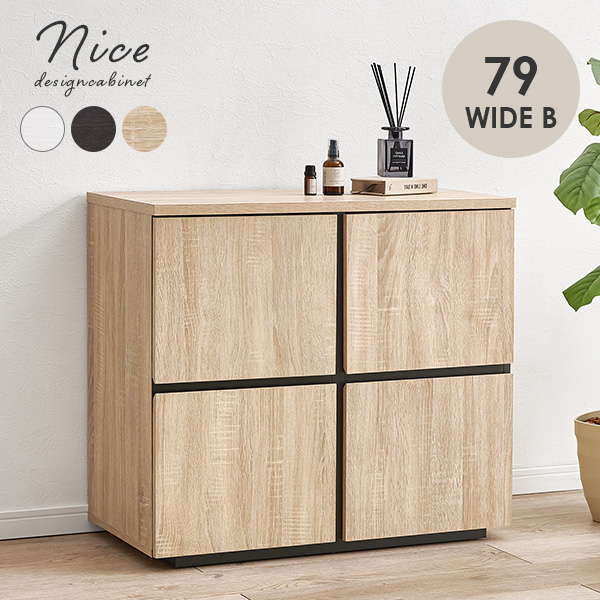 キャビネット サイドボード 幅79cm 扉 可動棚 大容量 収納家具 小物 書類 本 文房具 ディスプレイ リビング シンプル おしゃれ ナイス B