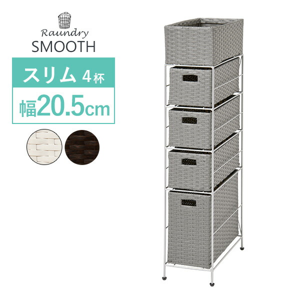 ランドリーチェスト スリムラック スリム 4杯 幅20.5cm 収納 隙間収納 タオル収納 アジャスター付き 完成品 洗面所 おしゃれ スムース