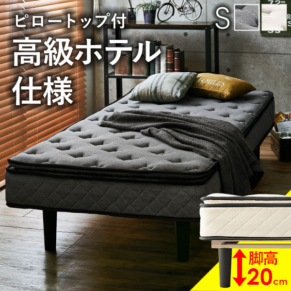 ベッド 脚付きマットレス マットレス すのこフレーム シングル S ポケットコイル ピロートップ付き 圧縮ロール梱包 工具付属 耐荷重120kg