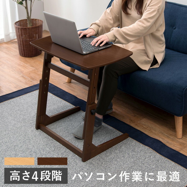 サイドテーブル ソファテーブル ナイトテーブル 幅65cm 高さ調節 木製 在宅ワーク ベッドサイド ナチュラル モダン シンプル おしゃれ