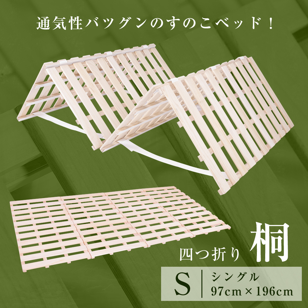 すのこベッド シングル 折りたたみ 四つ折り 桐 厚み2.5cm ベット すのこ 低ホル スノコベッド 木製 湿気 床寒さ対策カビ対策 除湿 爆買