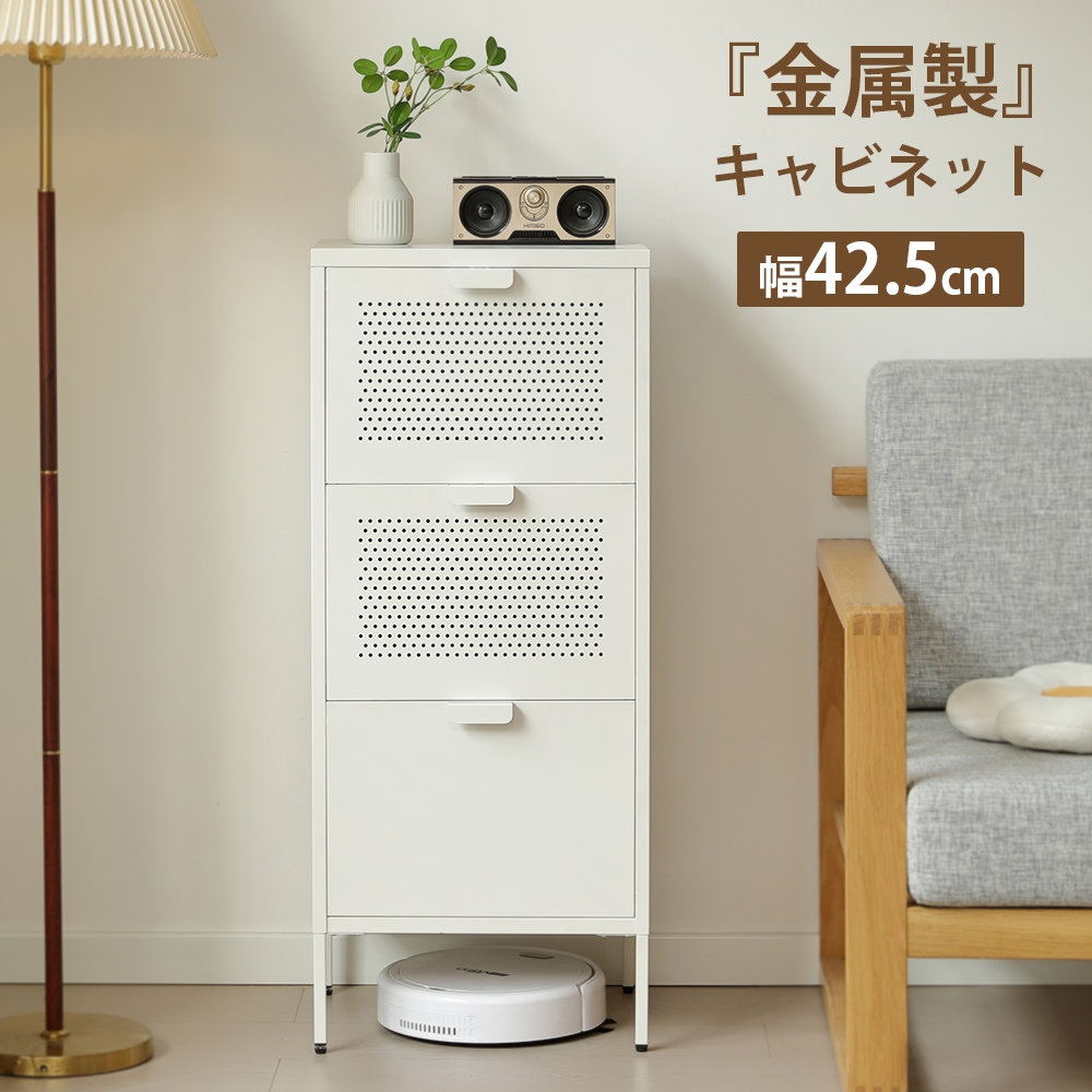 キャビネット サイドボード リビングボード リビング 収納 スチール製 収納棚 リビングチェスト 白 収納家具 チェスト おしゃれ 可動棚 扉付き 引き出し