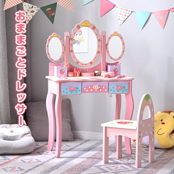 おままごとドレッサー 子供ドレッサー 姫系 三面鏡 引き出し おもちゃ 木製 お化粧 おめかし メイク台 3歳 4歳 5歳 6歳 クリスマスプレゼント