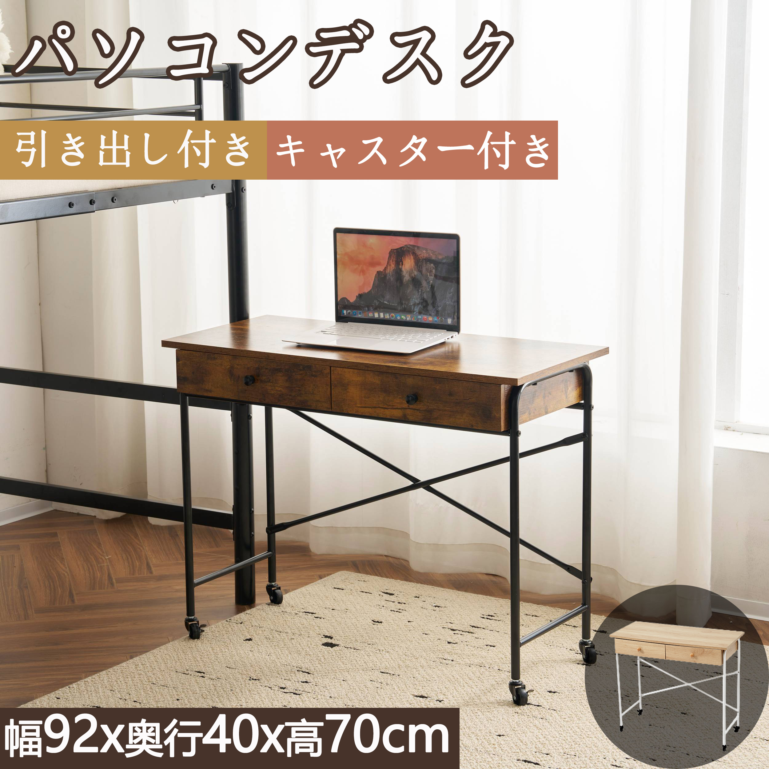 パソコンデスク デスク 書斎デスク キャスター付き 引き出し付き pcデスク コンパクト テーブル 机 学習デスク 学習机 勉強机 収納 爆買