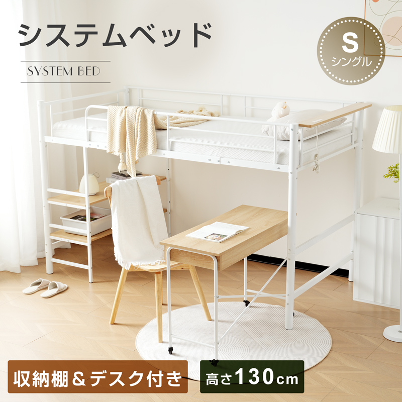 ロフトベッド ロータイプ システムベッド ロフトベット ロフト 机付き ミドル 子供 大人用 パイプベッド シングル 頑丈 収納 棚 宮 コンセント 耐震