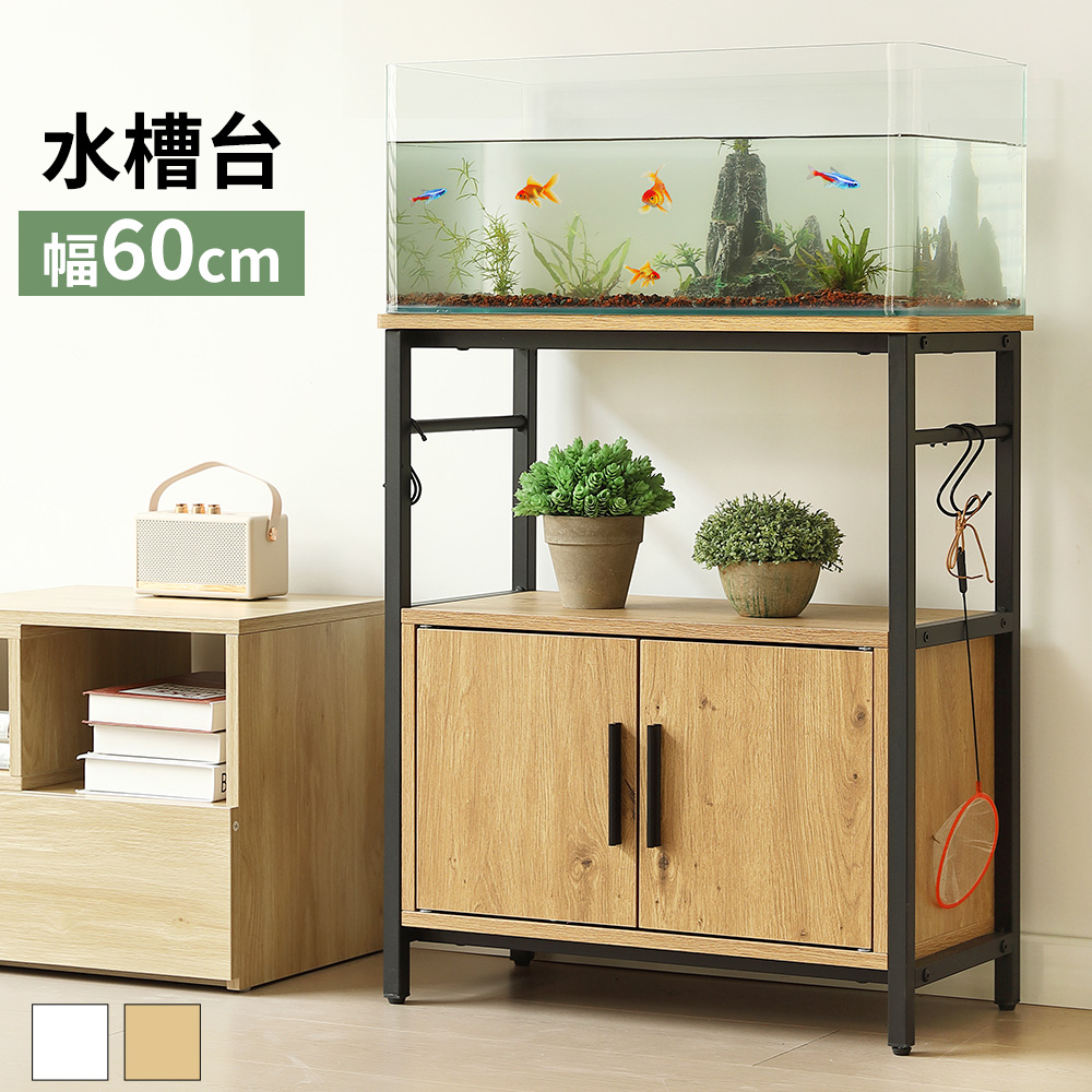 水槽台 60cm 水槽ラック 水槽棚 水槽キャビネット 水槽用台 プリンタ台 収納 棚 3段 フック付 ロータイプ 耐荷重120kg 頑丈 アジャスター付き 木製 飼育