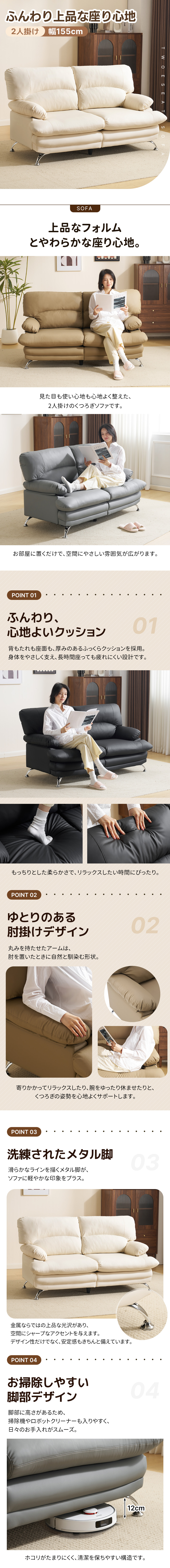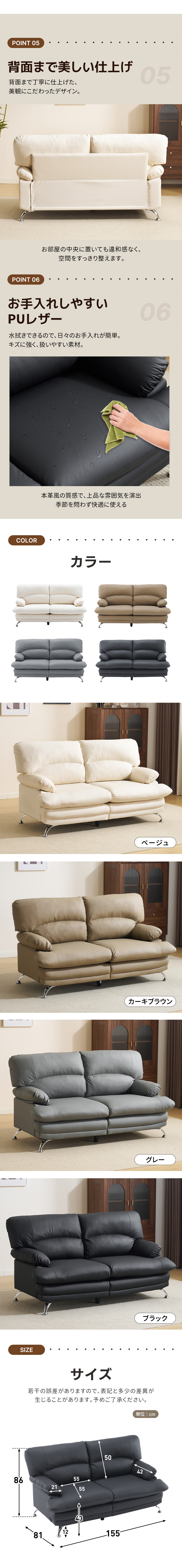 新作特価★【翌日配送/指定日OK】ソファー 2人掛け コンパクト レザー おしゃれ ソファ 幅155cm 2人掛けソファ 1人掛け 一人暮らし 北欧 新生活 4色