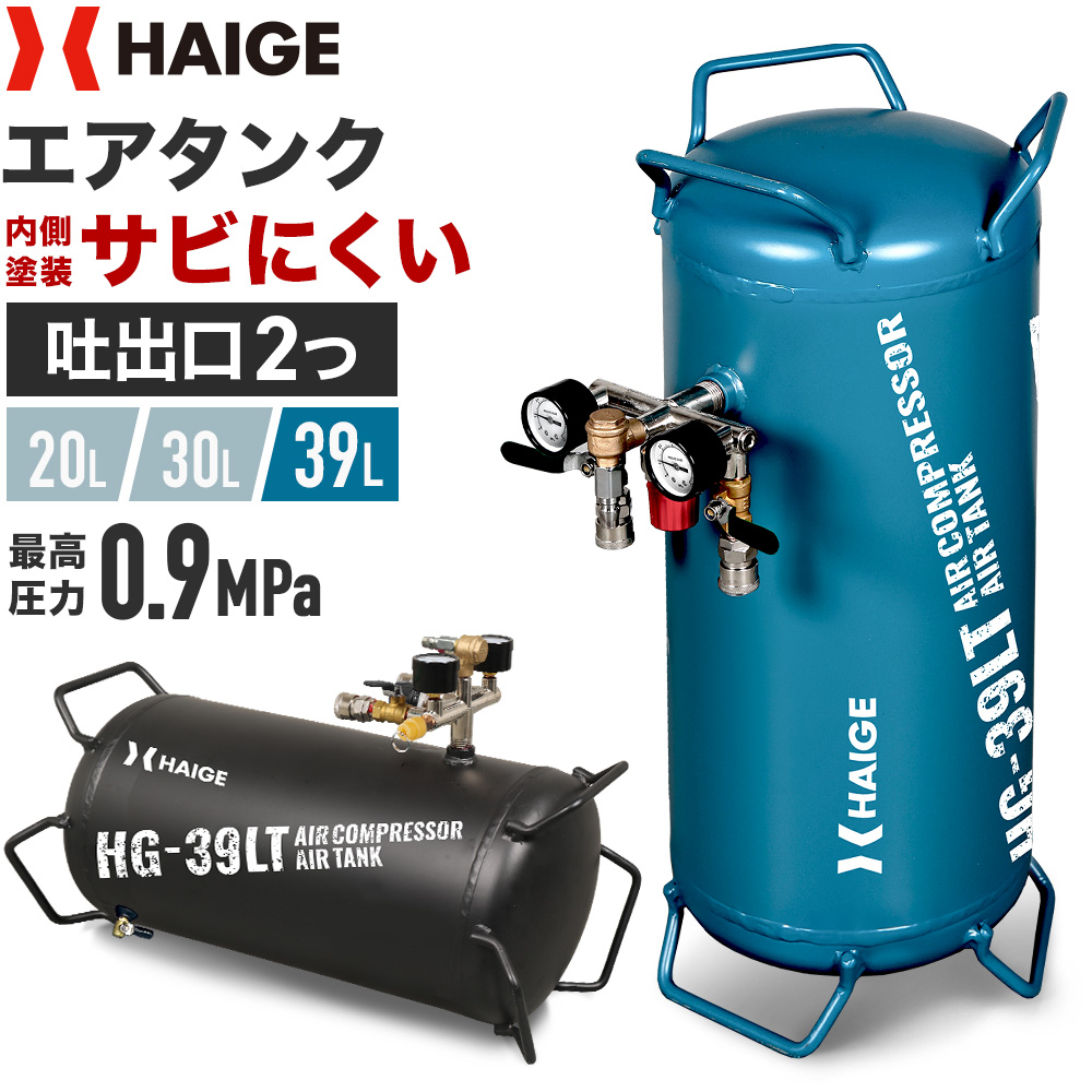 ハイガー スチール製エアタンク サブタンク 容量39L 吐出口2つ サビにくい内部塗装 HG-39LT 1年保証