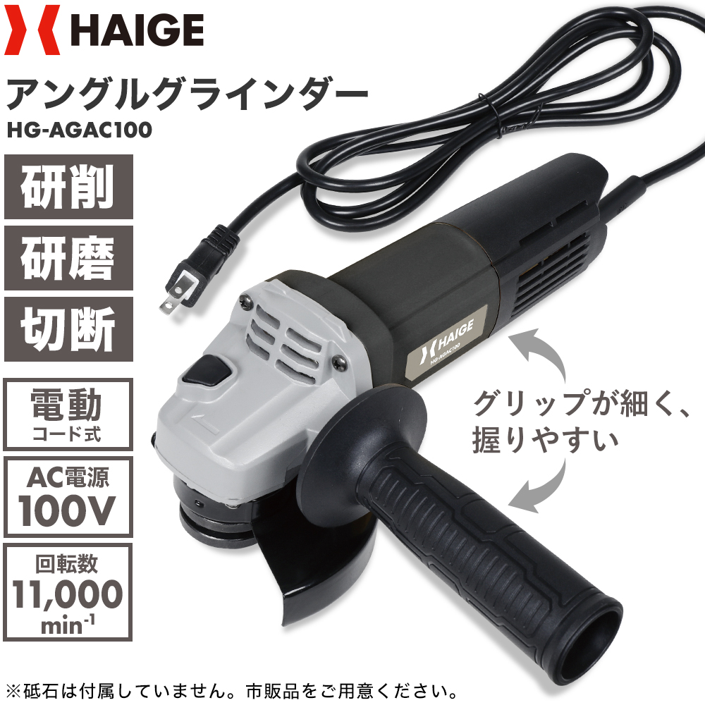 【半額クーポン★3/22まで】ハイガー 電動アングルグラインダー ディスクグラインダー コード式 補助ハンドル付き HG-AGAC100