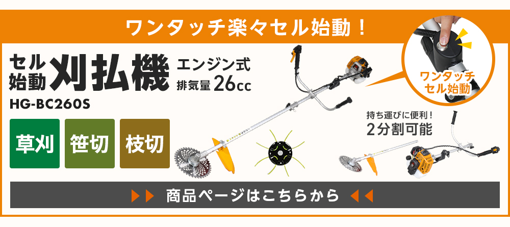セル付きで簡単にエンジン始動できる、26ccのハイパワーな刈払機。