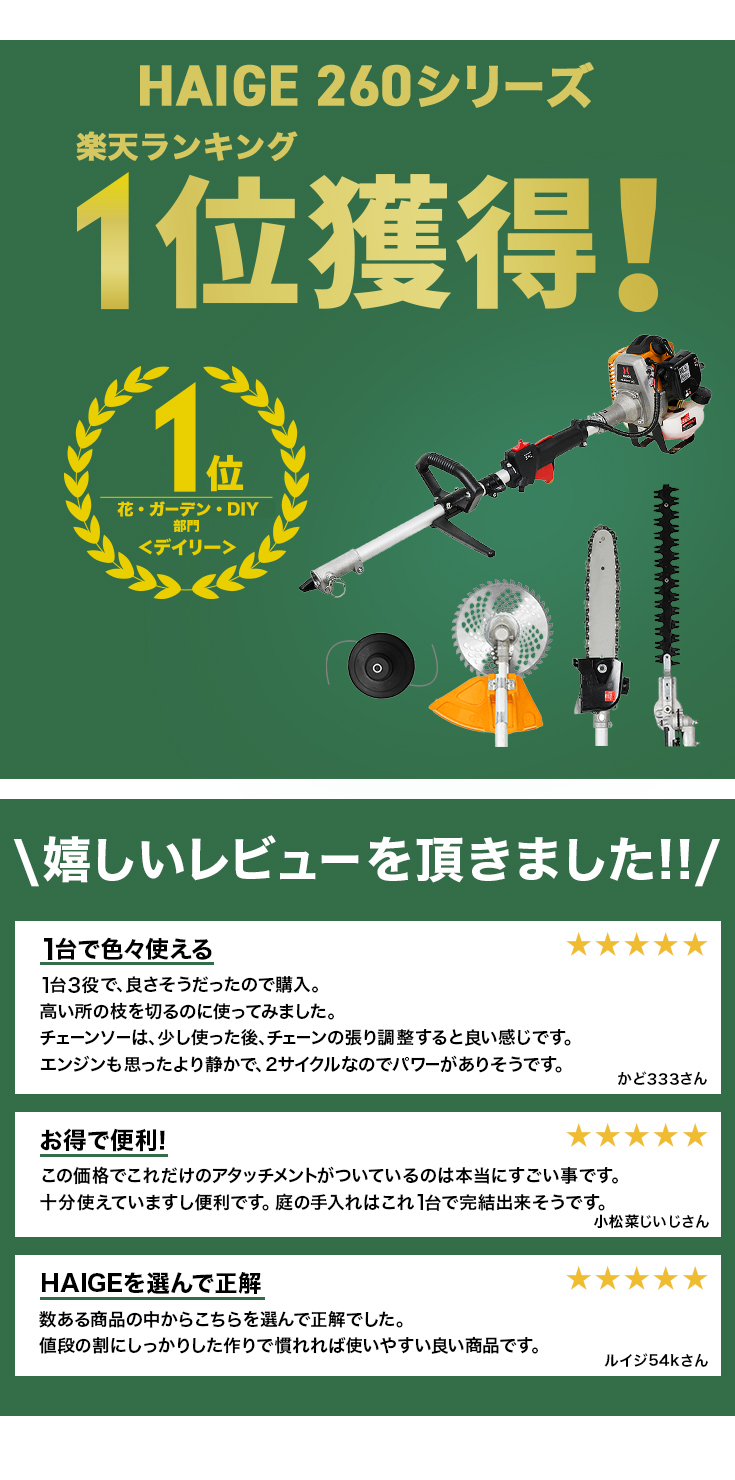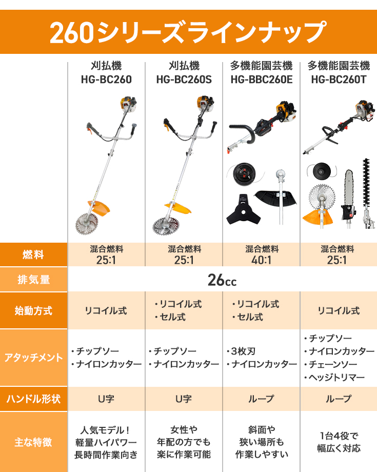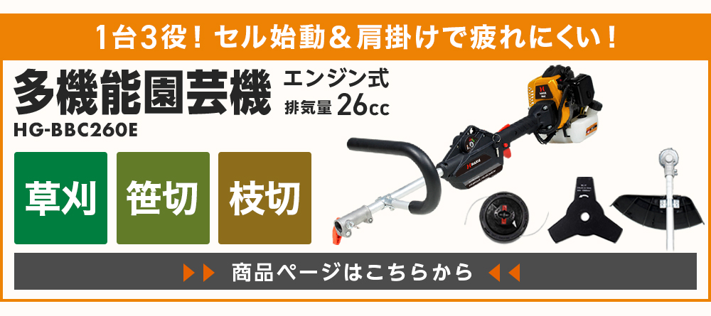 <草芝早割5000円クーポン★3/31まで>ハイガー エンジン刈払機 草刈機 セル付き ワンタッチスタート 26CC 2スト 両手・U字ハンドル HG-BC260S 1年保証