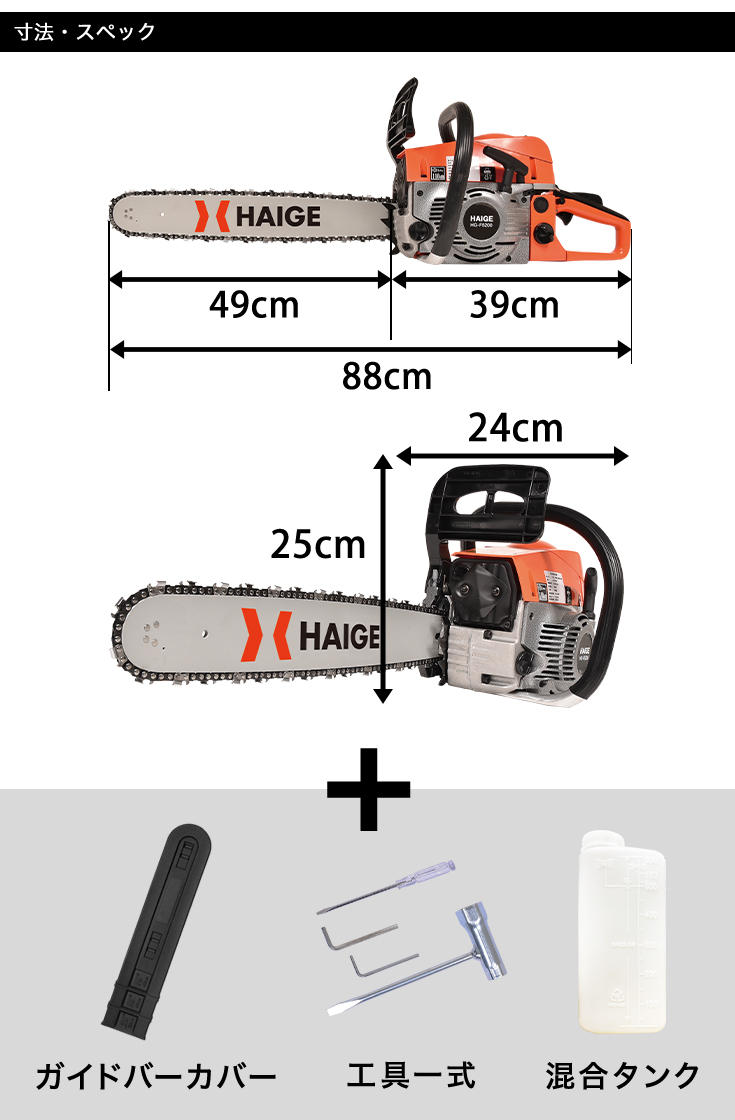 ハイガー チェーンソー エンジン 52cc 軽量 20インチ(50cm) 3馬力 HG-F5200 1年保証