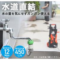 水道直結タイプなので、水量を気にせずにガンガン汚れを落としたい方にオススメ!ノズルは付け替えせずに先端を回してストレートとワイドの噴射切り替えができる便利なデュアルノズルタイプ。洗浄箇所に合わせて素早くスムーズに作業ができます。また、洗剤洗浄ができるワンタッチで付け替え可能の洗剤散布スプレーノズル付き。吸水ホース付属なので、溜め水からの吸水も可能。洗車、外壁洗浄、風呂洗浄、ベランダ洗浄などに。最大吐出力12MPa、最大吐出水量450L\h