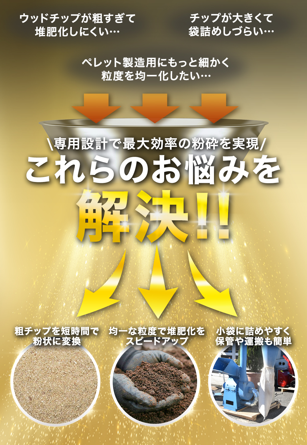関連ワード:電動 粉砕機 ハンマーミル ウッドチッパー クラッシャー チップ化機 ペレット前処理機 ペレット製造機 木材破砕機 チッパーシュレッダー 枝 木 200W 三相 業務用 家庭用 ペレタイザー ウッドチップ 替刃 園芸 農業 人気 おすすめ 補助金 助成金 DIY ガーデニング 庭木処理 園芸 廃材処理 肥料作り コンポスト材料作成 バイオマス燃料 木くず処理 枝葉粉砕 農業機械 HAIGE ハイガー