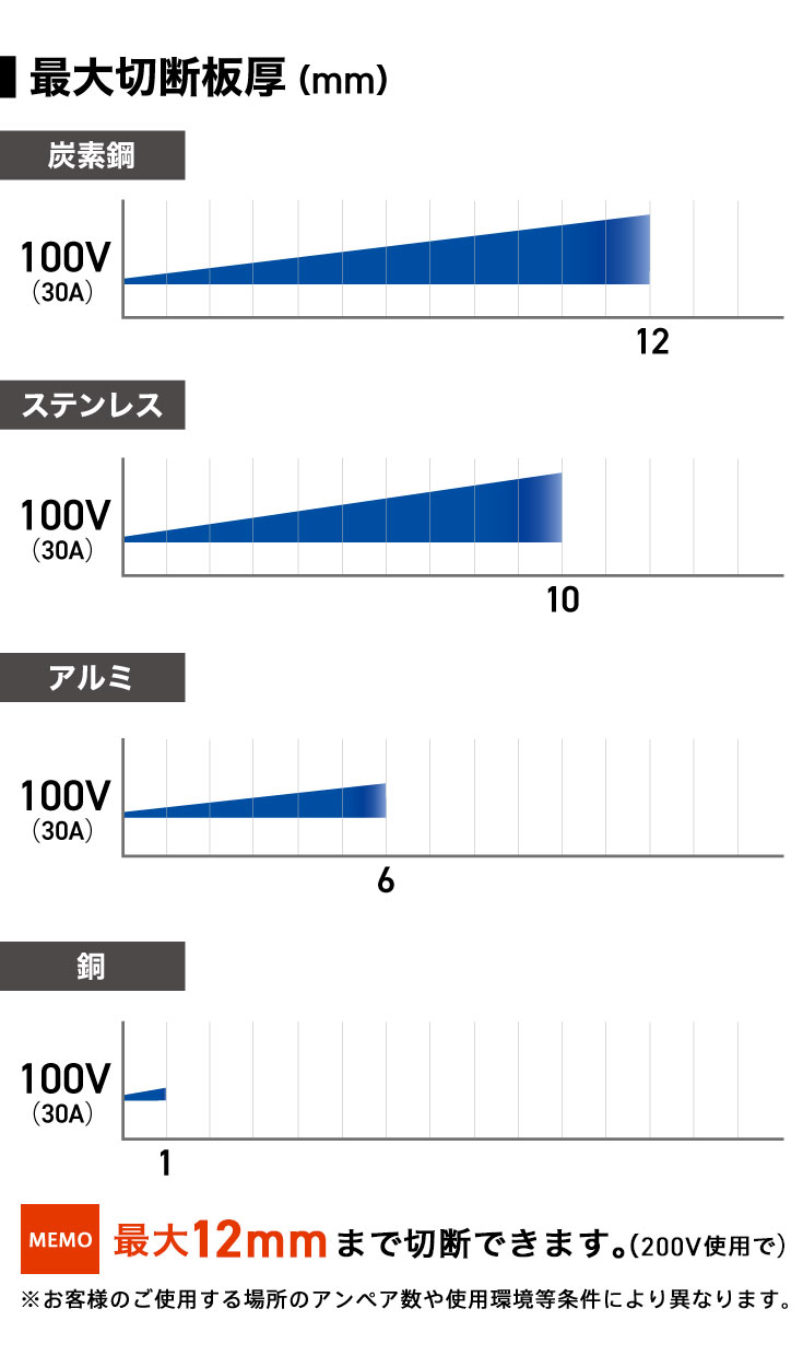 | 切断能力(軟鋼の場合)※2 | 5-12mm |