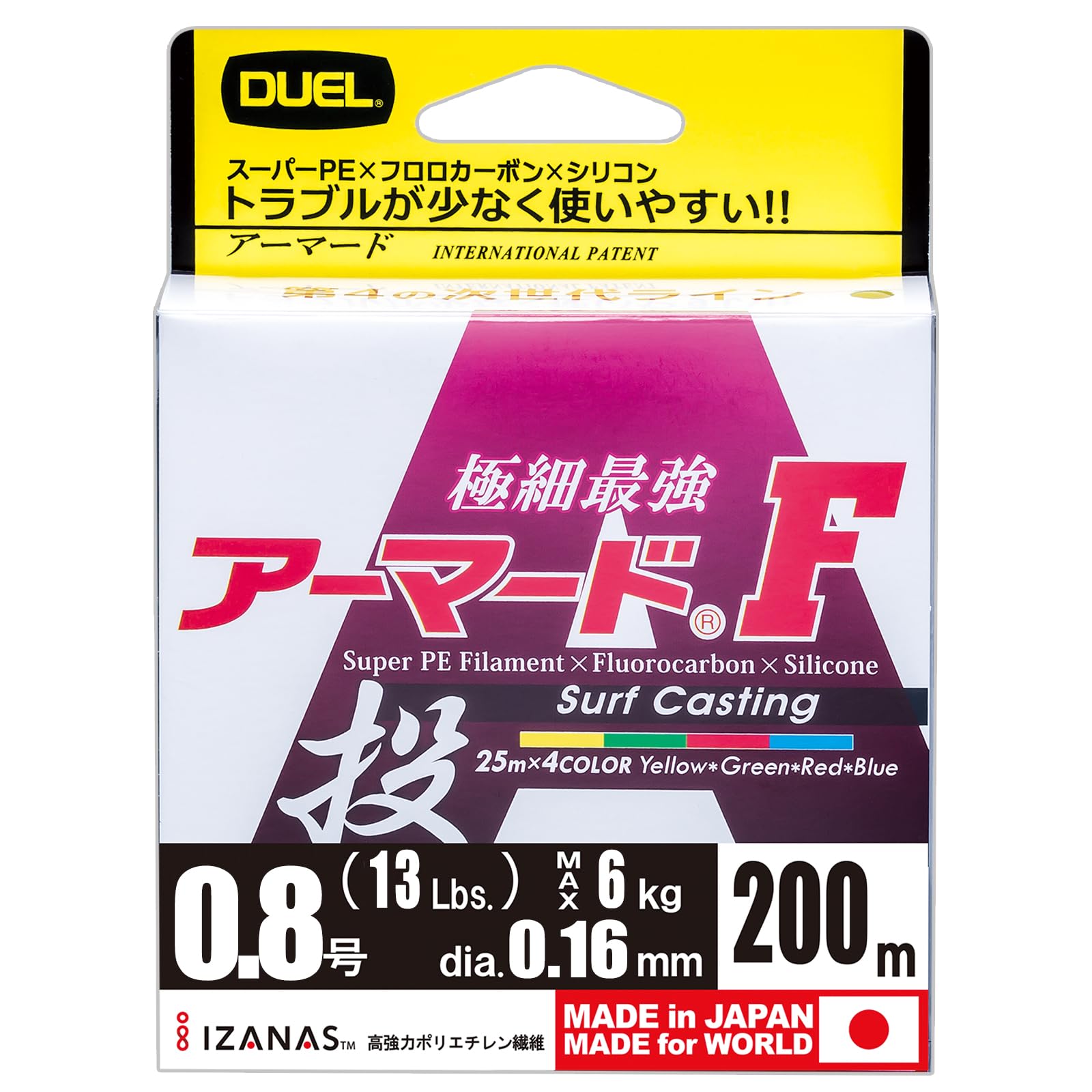 商品名:DUEL(デュエル) PEライン 0.8号 アーマード F 投げ 200M 0.8号 25m4カラー 投げ H4130