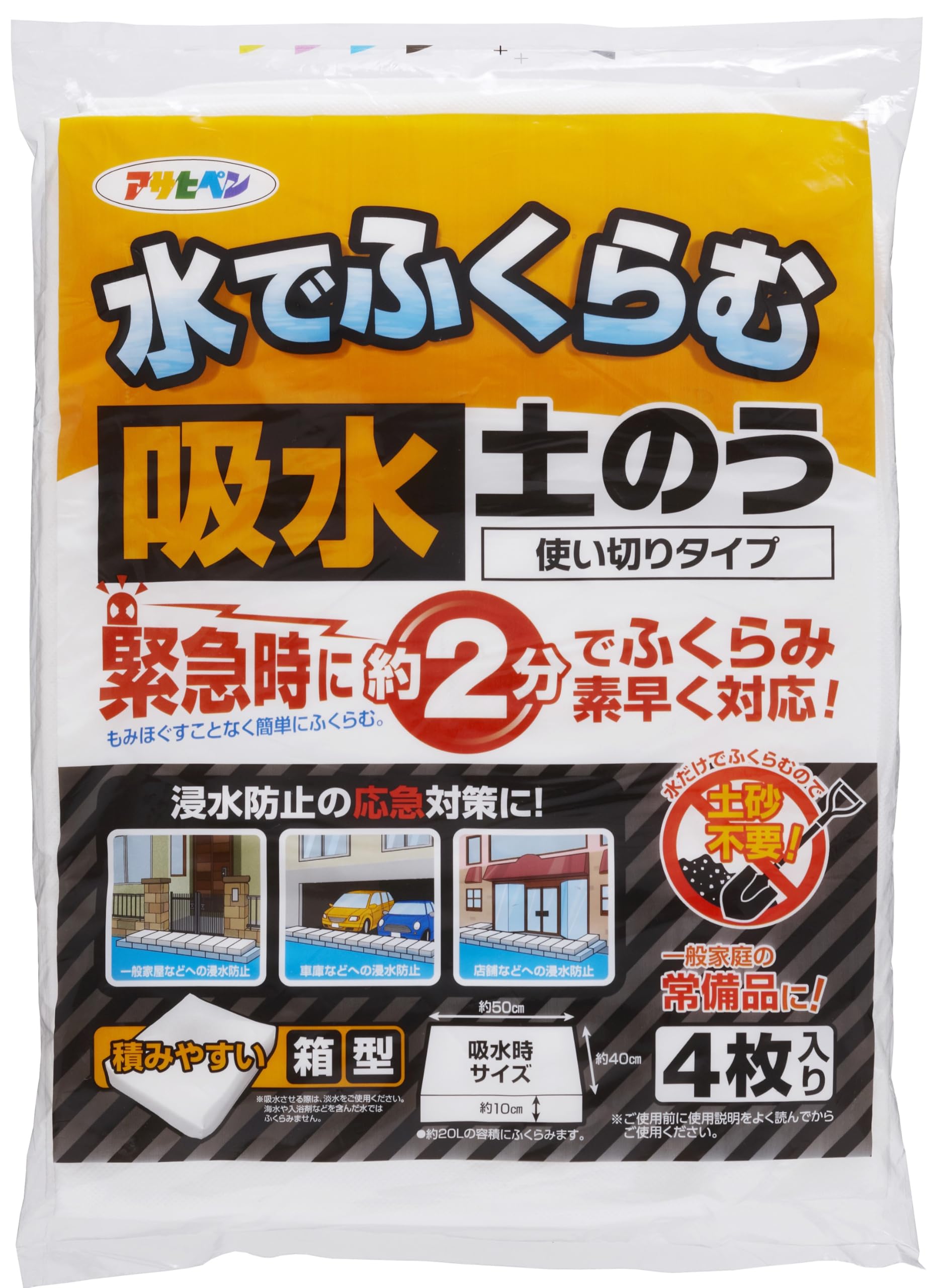 商品名:アサヒペン(Asahipen) 土のう 水でふくらむ吸水土のう KD-004 使い切りタイプ 浸水防止 4入