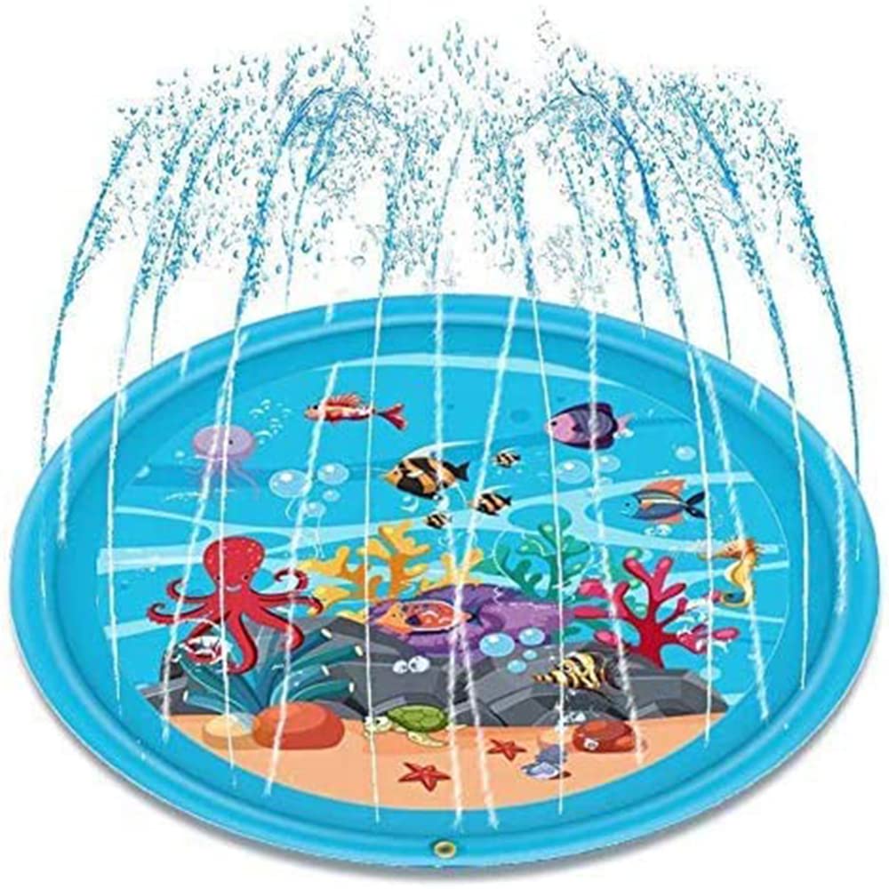Asamoom 噴水マット プレイマット おもちゃ キッズ 水遊び 親子水遊びにピッタリ!直径170CMの家庭用噴水プレイマット、アウトドアプールの庭