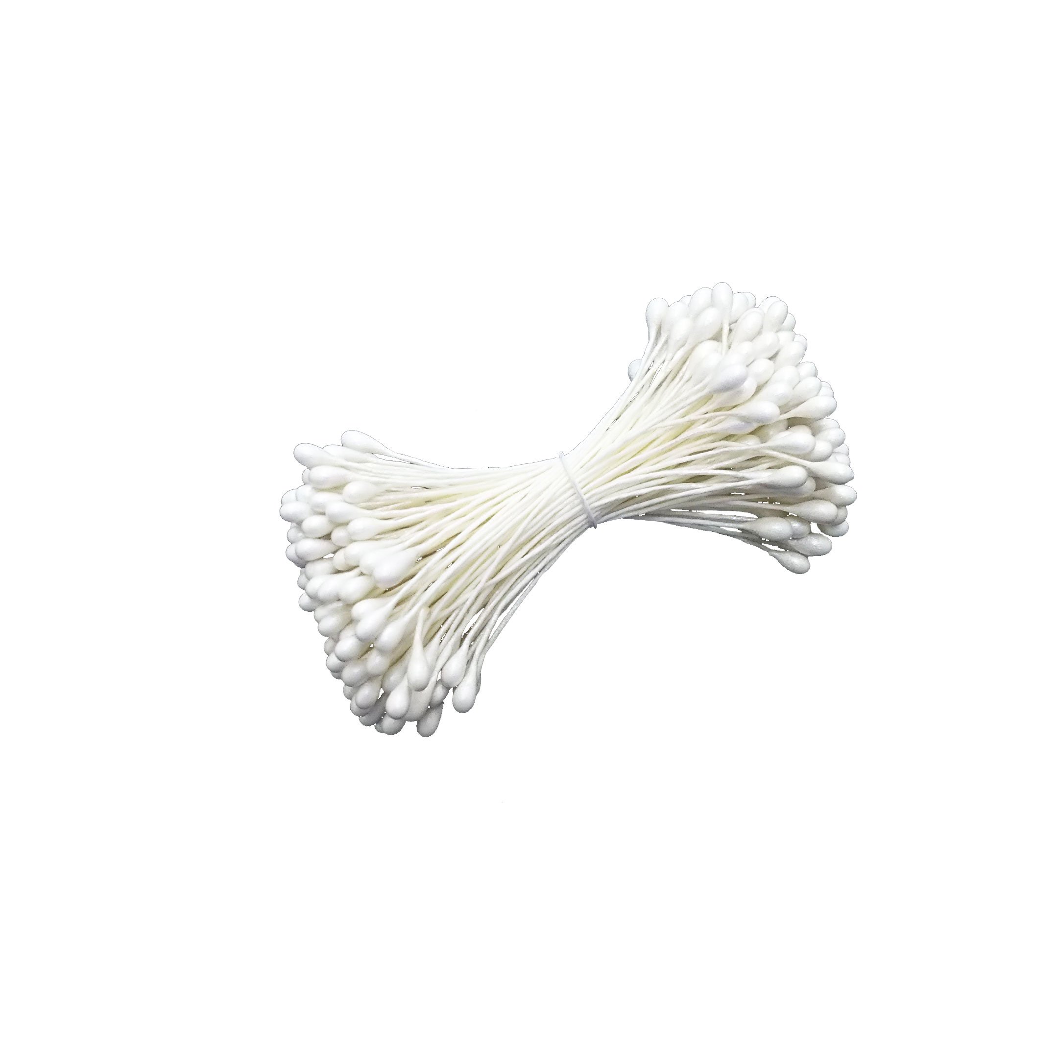 造花、アートフラワー用の花芯材料です。 両端に粒がついており二つ折りにしてワイヤー・フローラテープで巻き花芯を作ります。 コサージュやかんざし等のアクセサリー制作にも最適です。 入数:144本(288粒)×5束 サイズ(約):長さ6cm 粒径2mm ※手作りにつき誤差があります 素材:炭酸カルシウム、紙