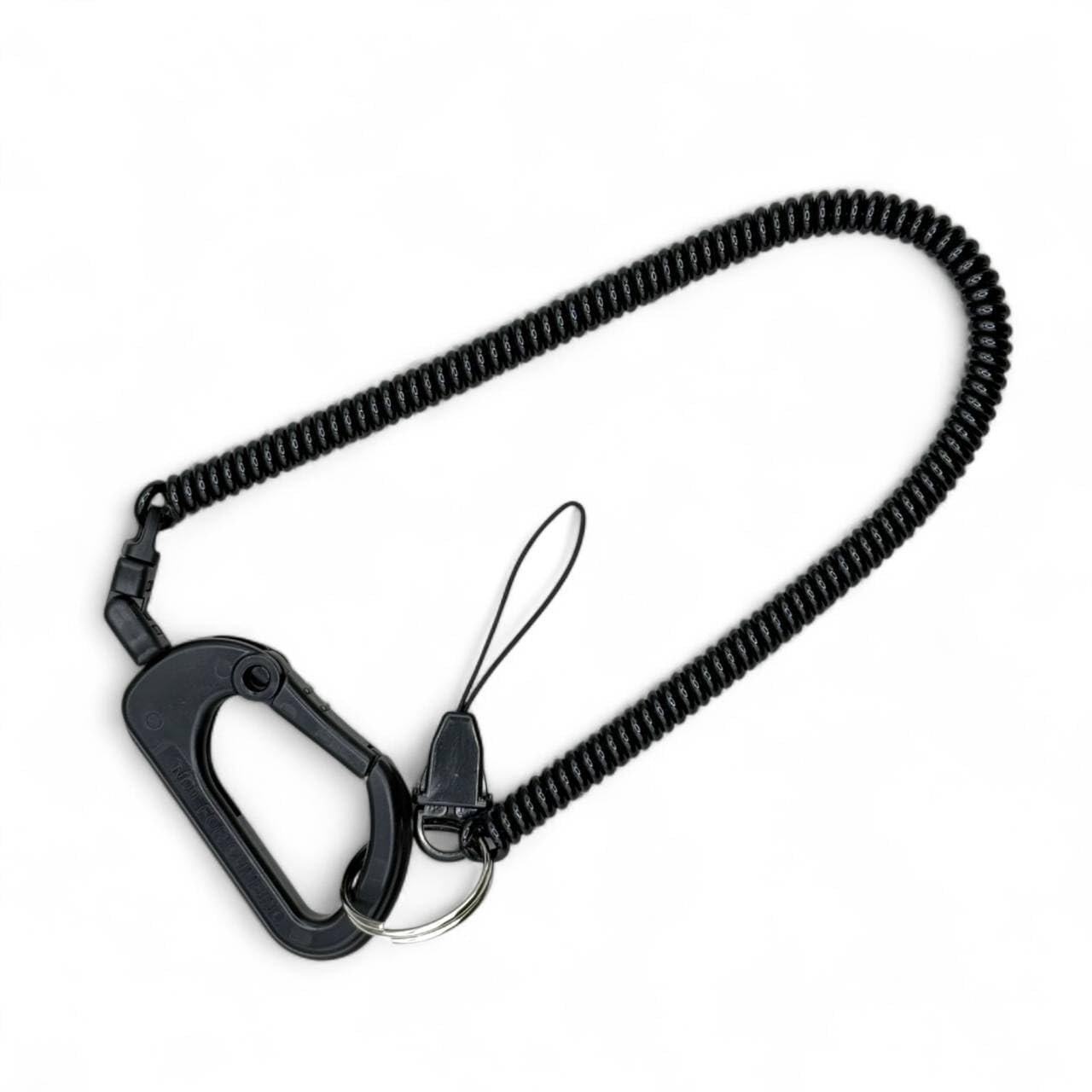 BeyonMind コイルスリムストラップ (約36cm〜約160cm) 鍵 スマホ 落下防止 紛失防止 伸びる ストラップ (回転カラビナ/黒) キ