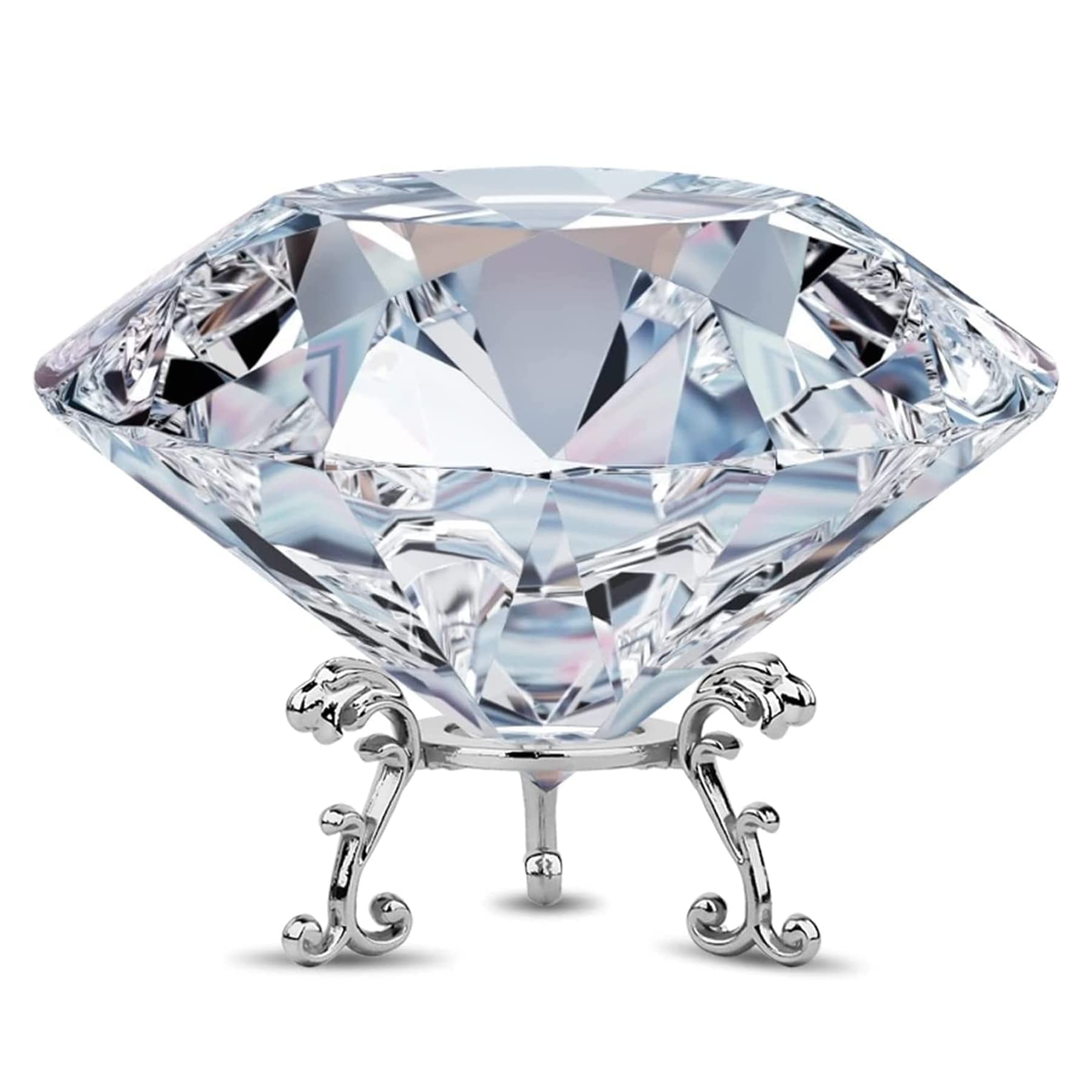 MerryNine 80mm K9クリスタル ダイヤモンドオブジェ ペーパーウェイト 【光の芸術品】 三角形金属ベース ホワイトデー/母の日/誕生日/